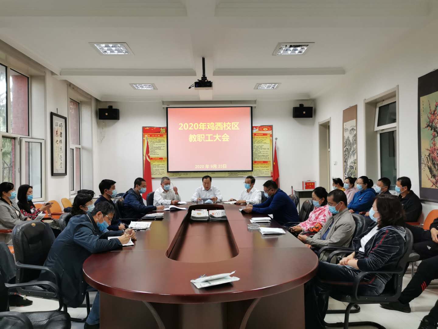 9月23日下午,鸡西校区在教学楼209会议室召开教职工大会。全体教职工参加了大会。会议由工会副主席、公海赌赌船官网jc710副经理李鹏银主持。