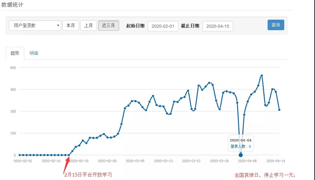一个月内共有16600多人次登陆“青书学堂”在线学习数据