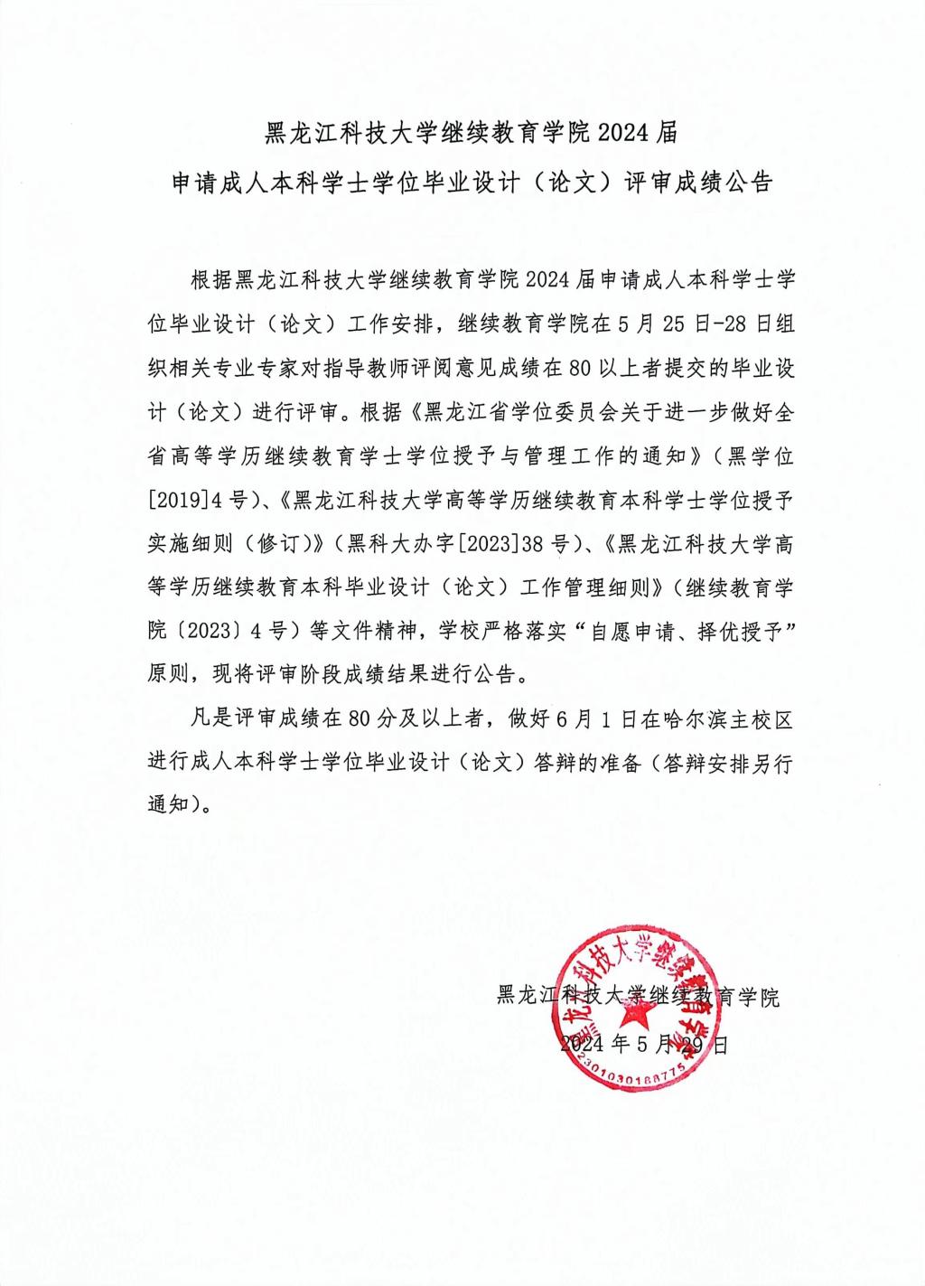 欢迎来公海欢迎来到船7012024届申请成人本科学士学位毕业设计(论文)评审成绩公告
