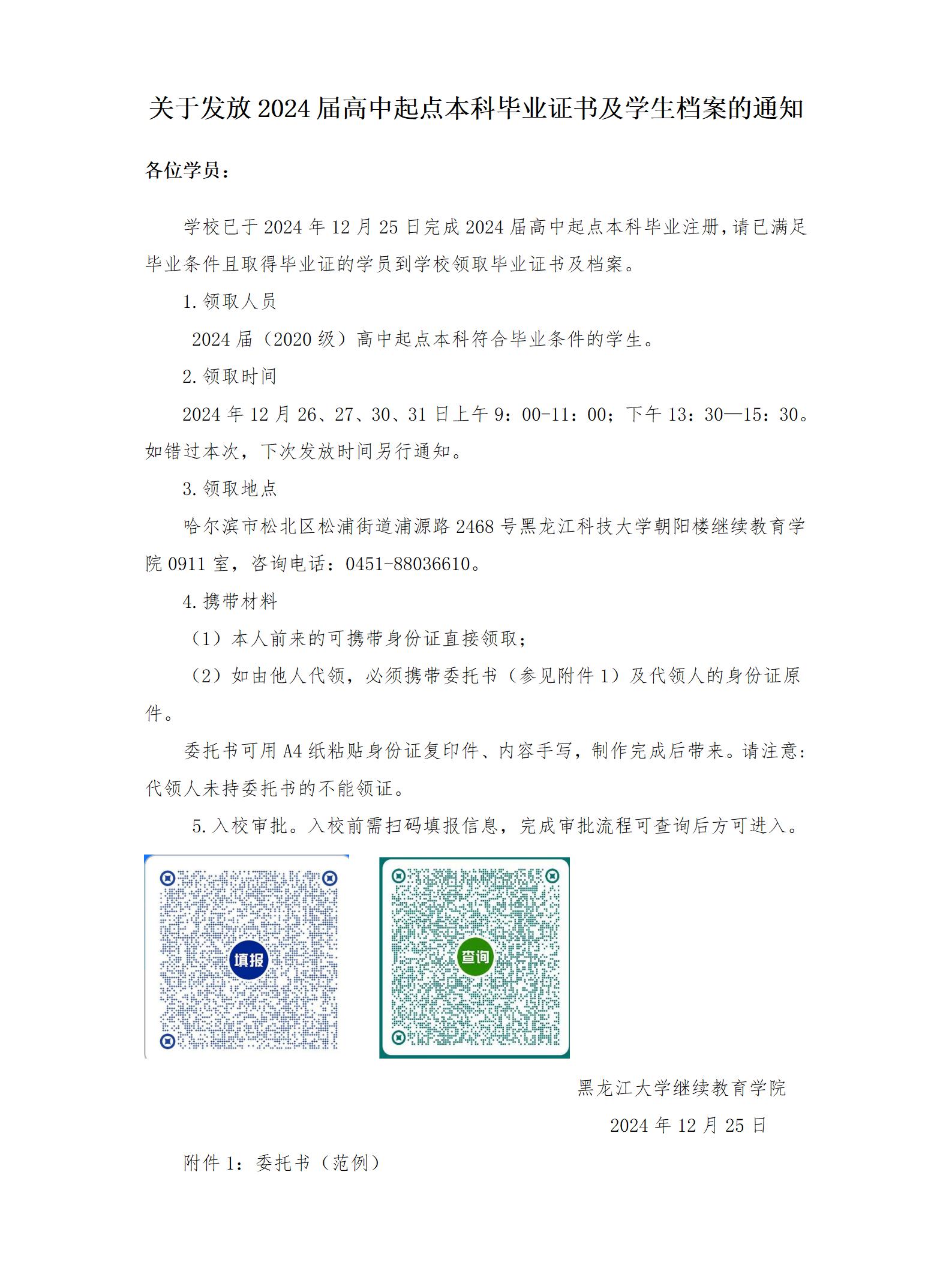 关于发放2024届高中起点本科毕业证书及员工档案的通知