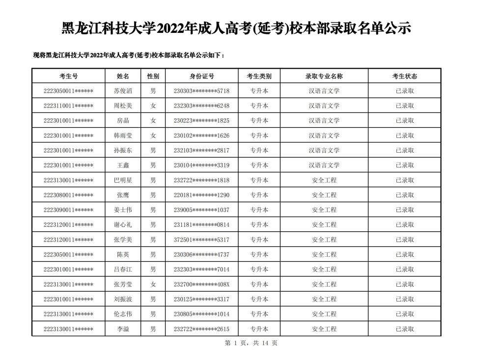 公海赌赌船官网jc7102022年成人高考(延考)校本部录取名单公示