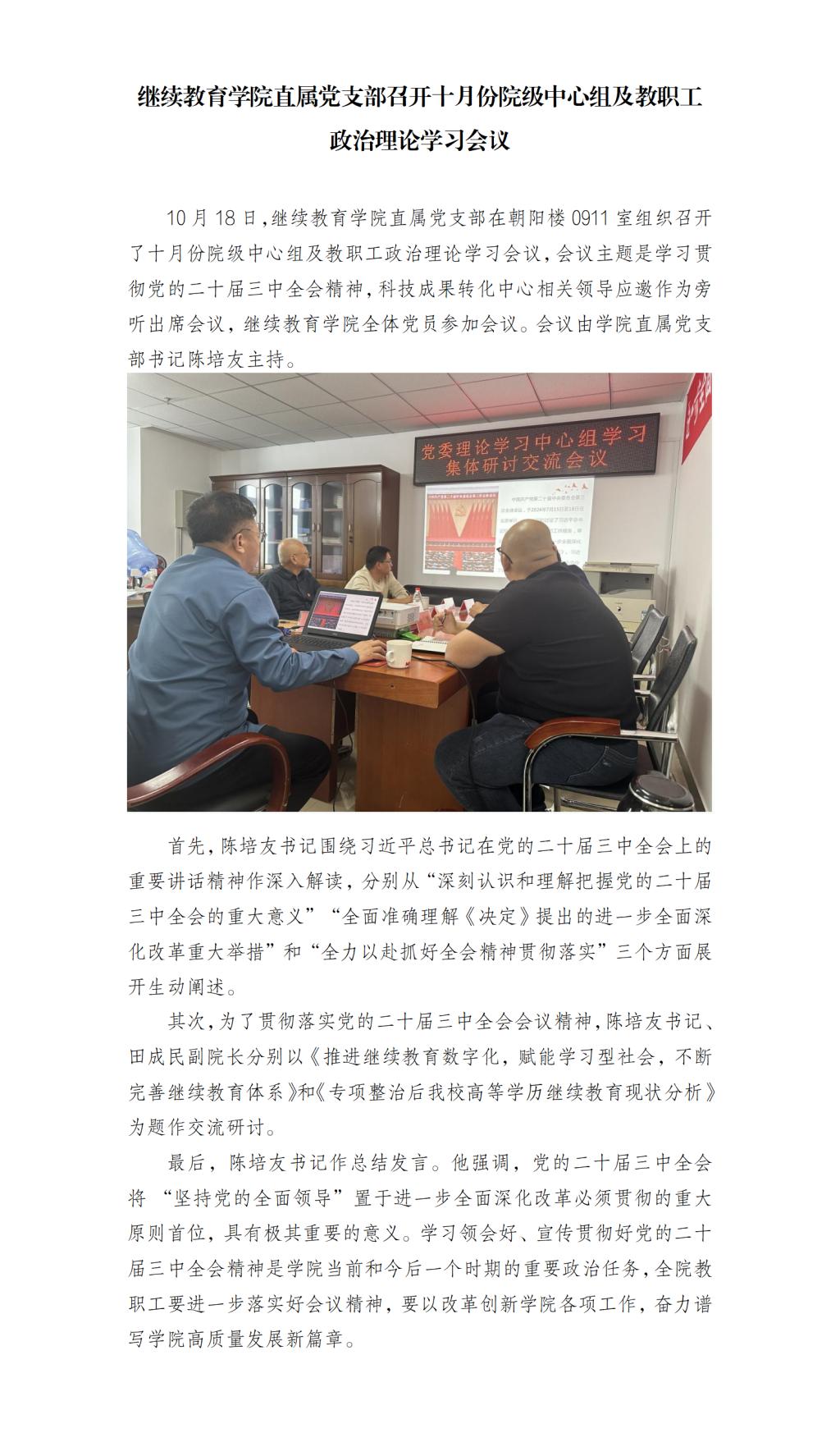 公海赌赌船官网jc710直属党支部召开十月份院级中心组及教职工政治理论学习会议