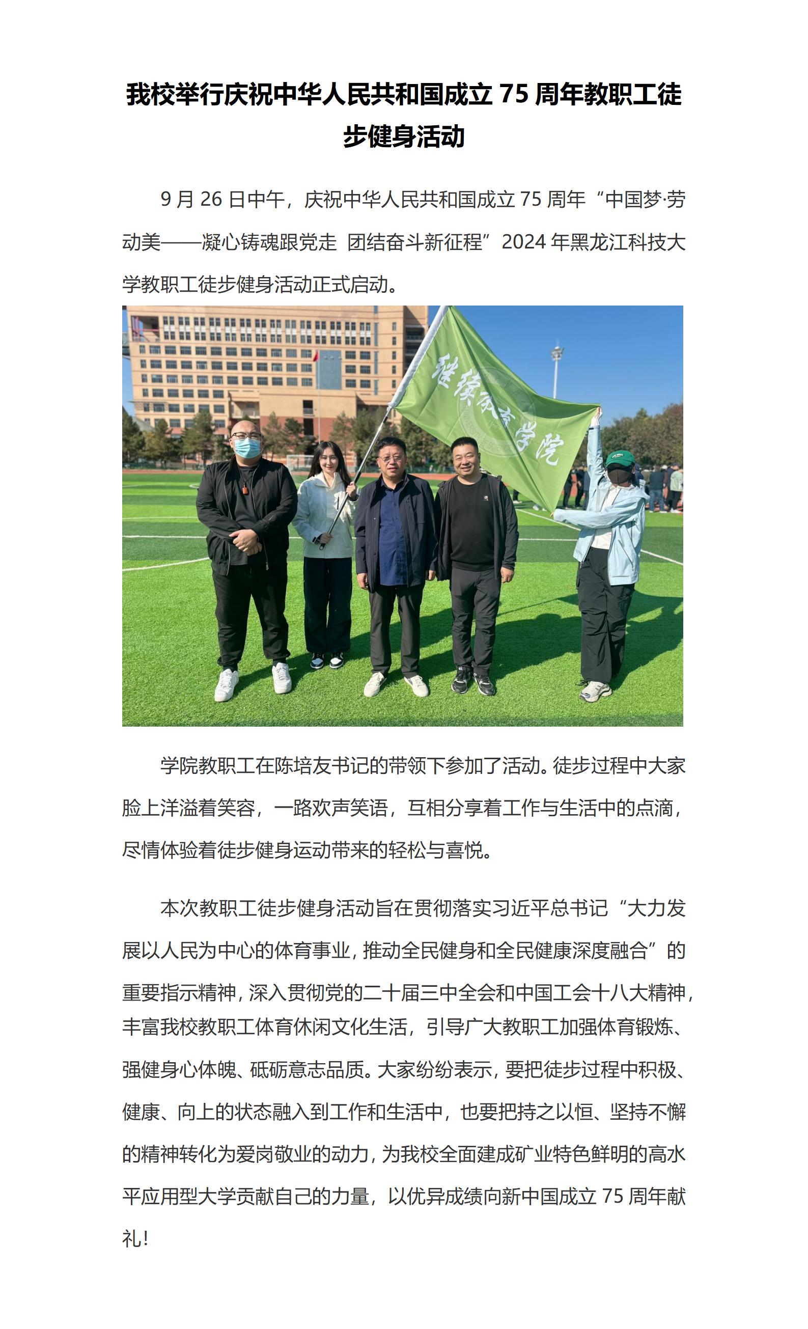 公司举行庆祝中华人民共和国成立75周年教职工徒步健身活动