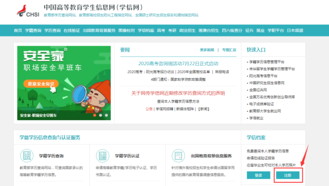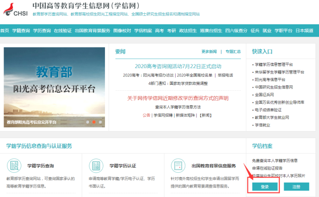 网址:https://www.chsi.com.cn/未注册的进入网址先点击注册。