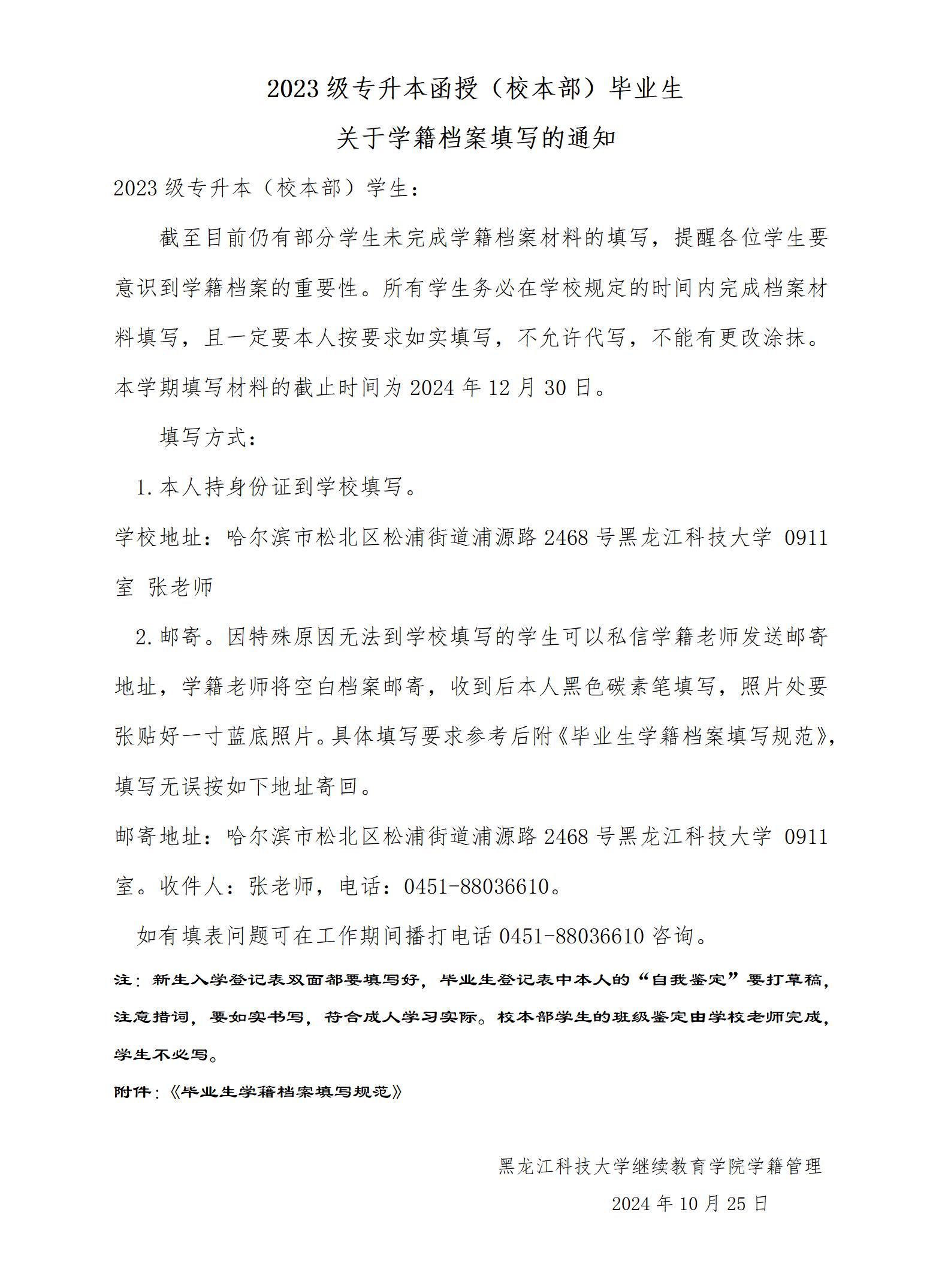 2023级专升本函授(校本部)毕业生关于学籍档案填写的通知